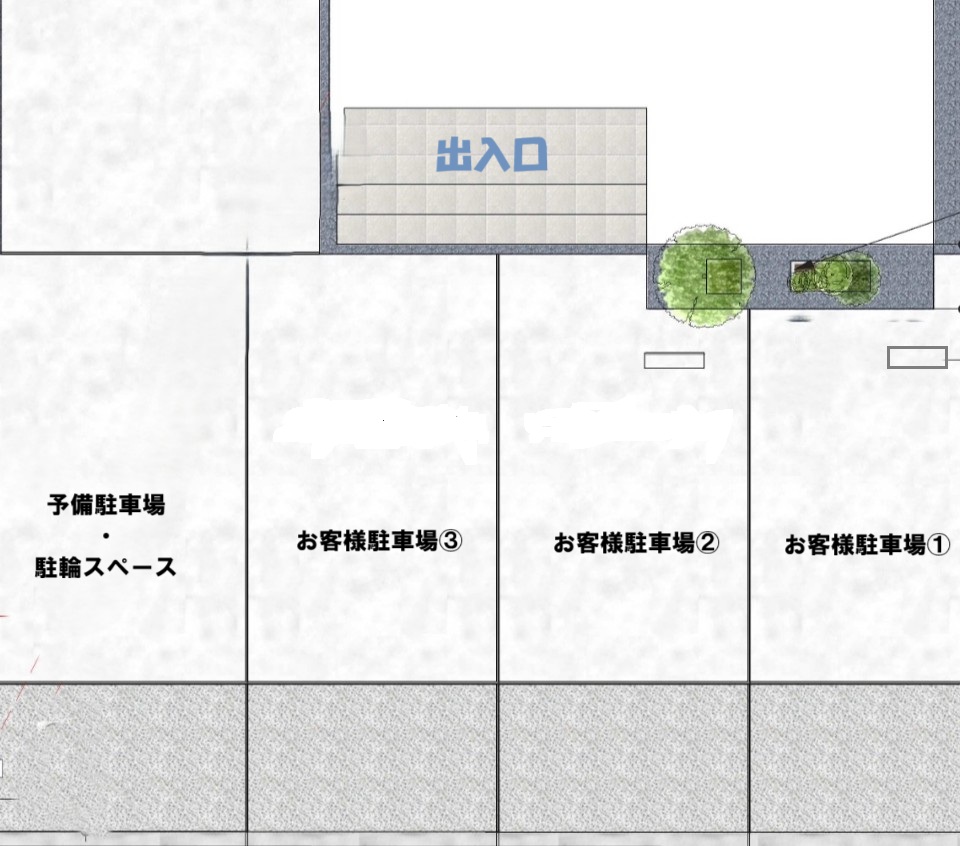 西側駐車スペースは予備駐車場兼駐輪スペースとなりますので、基本的にはお客様駐車場①~③をご利用ください。